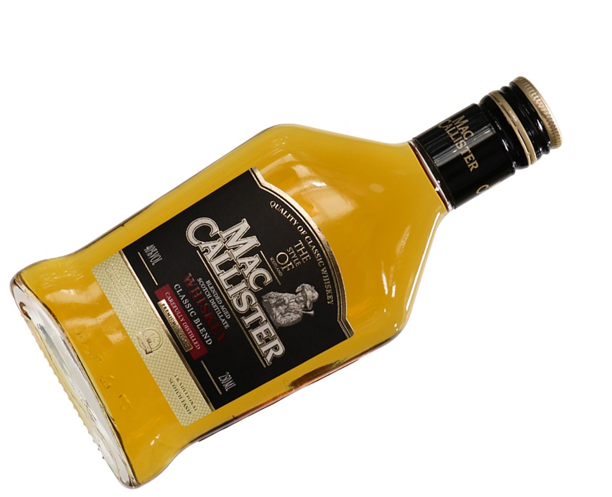 Mac Callister Original - молодой виски с золотисто-янтарным цветом, легким вкусом и пряным ароматом с нотками дыма. Выдерживается три года в дубовой бочке, сочетается как с льдом, так и без него, с горьковатыми нотами дыма и сладостью ванили.