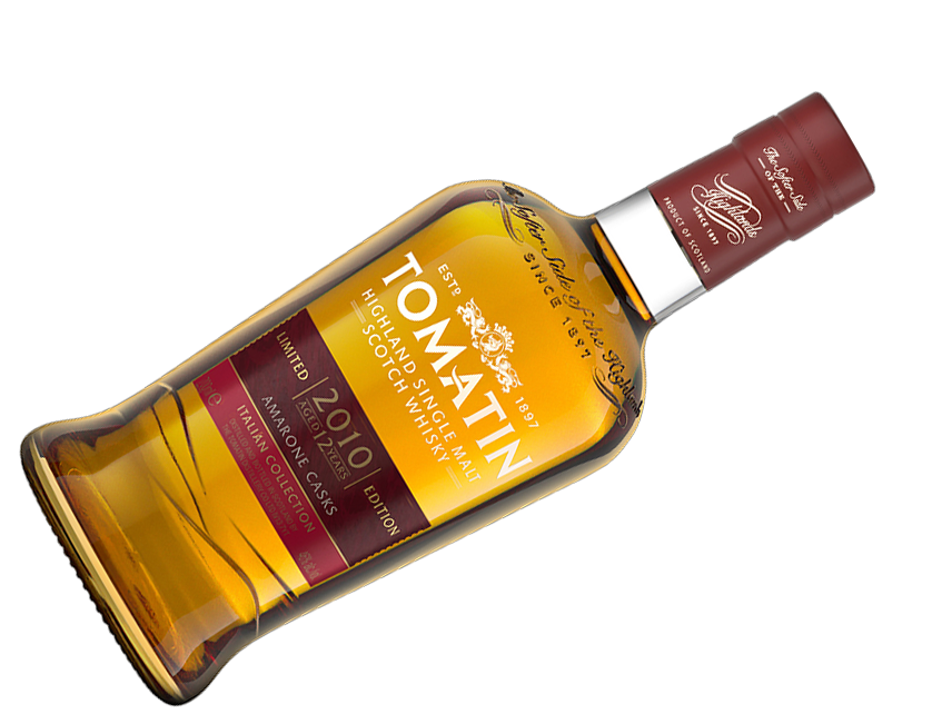 Tomatin Amarone - Italian Collection 12Y 2010/2023 — это односолодовый виски, выдержанный в бочках из-под итальянского вина Амароне, что придает ему уникальные ноты клубники, груши и ревеня, с крепостью 46%.