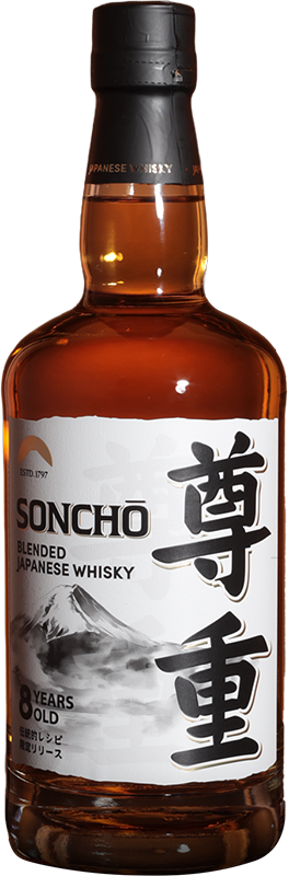 Soncho 尊重 8 YO — японский купажированный виски с мягким сладким вкусом сухофруктов и меда, выдержанный 8 лет, отражающий уважение к традициям и культуру медитативного наслаждения.