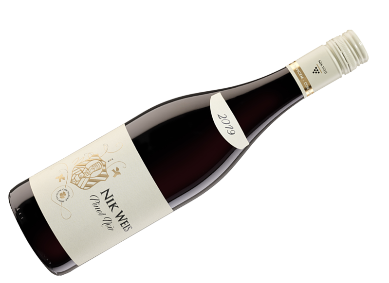 Nik Weis, Pinot Noir — соблазнительное красное нефильтрованное вино, обладающее характером, очаровательным ароматом и элегантным вкусом. Виноград сорта Пино Нуар для изготовления выращивается на аллювиальной почве из песка, гравия и глины, смешанных с красными сланцами. Почва хорошо снабжена водой, что особенно важно для культивирования бургундских сортов. Средний возраст лоз составляет 30 лет. После ферментации выдерживается в дубовых бочках 2-3 года и разливается по бутылкам без фильтрации. Потенциал хранения вина — 6-7 лет.