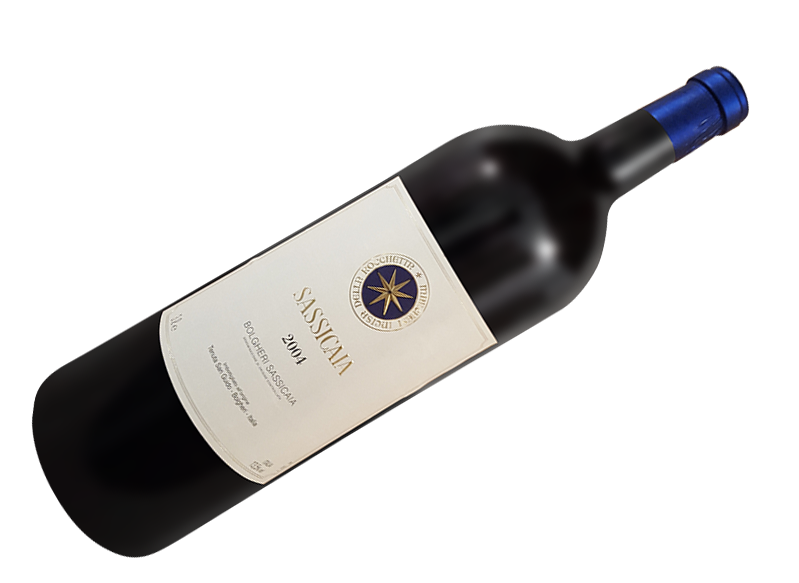 Bolgheri Sassicaia 2004 — элегантное и насыщенное красное вино из Тосканы с комплексным букетом из нот малины, вишни и средиземноморских трав, выдержанное 24 месяца в французском дубе, идеально сочетающееся с блюдами из дичи и выдержанными сырами.