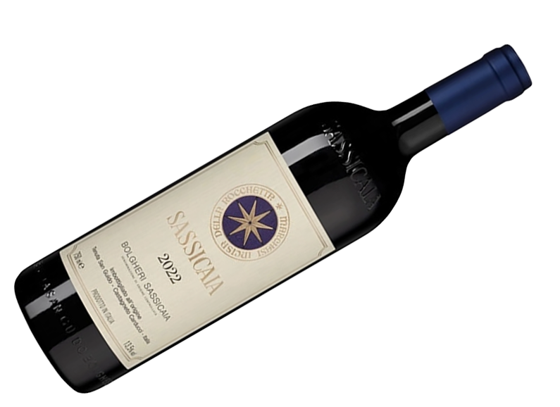 Sassicaia 2022 — элегантное и структурное тосканское вино из Cabernet Sauvignon и Cabernet Franc с ароматами чёрной смородины, трав и кедра, сочным ягодным вкусом, яркой кислотностью и длинным минеральным послевкусием, созданное для выдержки и высокой гастрономии.