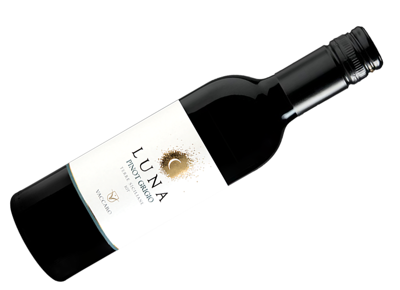 "Pinot Grigio Luna IGT" - легкое и освежающее белое вино с нежными фруктовыми оттенками груши, зеленого яблока и белых персиков, произведенное из сорта Пино Гриджио на виноградниках в зоне Салапарута на Сицилии.