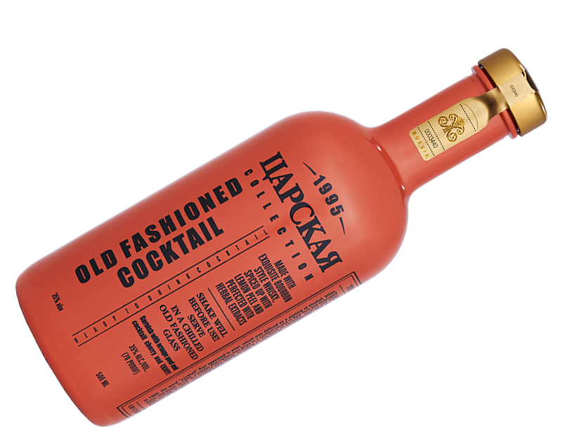 "Tsarskaya" Kollektsiya Old Fashion - коктейль с золотистым цветом, оригинальным вкусом, сбалансированным между сладостью и горечью, и ароматом, наполненным цитрусово-травяными нотками. Создан на основе зернового виски "Tavern Hound" Bourbon Style с добавлением травяного экстракта и лимонной цедры, отлично сочетается с закусками, орехами, сухофруктами и другими коктейлями.