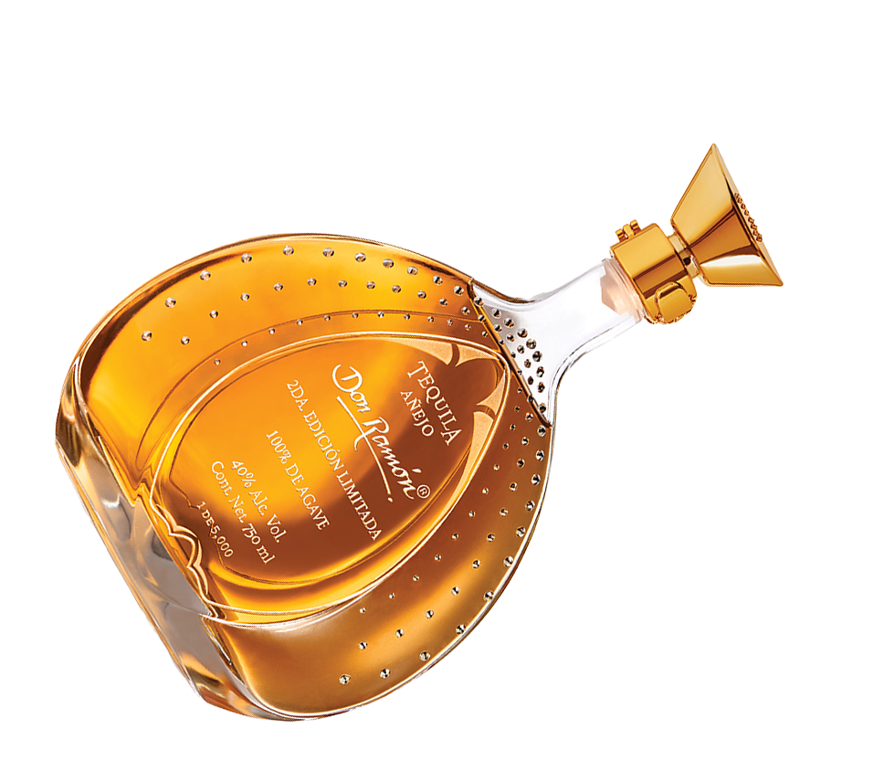Текила Don Ramón Limited Edition Añejo - эксклюзивный алкогольный напиток, выдержанный в дубовых бочках, произведенный из 100% синей агавы с амбровым цветом, сложным вкусом с нотами специй и сушеных фруктов, древесным ароматом и упакованный в бутылку, украшенную кристаллами Swarovski®, ограниченным тиражом в 5,000 бутылок.