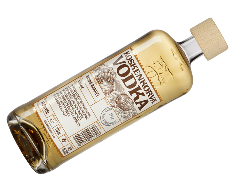 "Koskenkorva" Sauna Barrel — финская водка премиального класса, идея создания которой возникла благодаря дыму и жару деревенской сауны. Эта водка производится из отборного ячменя и местной родниковой воды. Она проходит многократную дистилляцию, благодаря чему приобретает мягкий, гармоничный вкус. Затем водка помещается для выдержки в дубовые бочки, в результате ее вкус обогащается легкими тонами бурбона, дымка и дегтя.