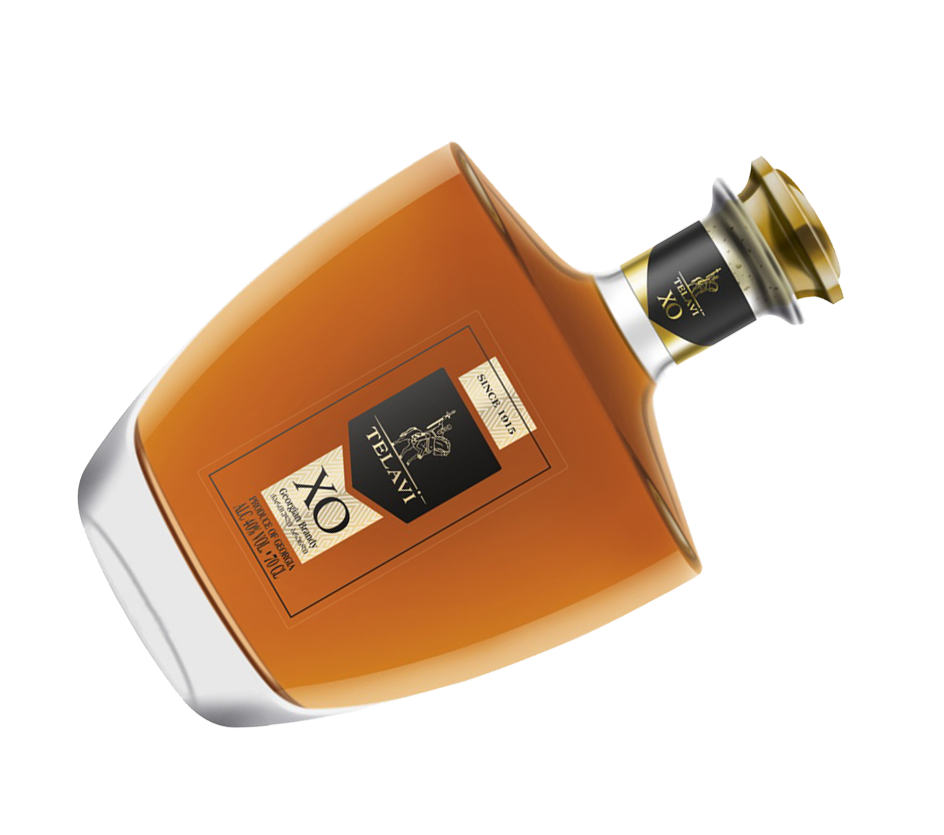 "Telavi" бренди — янтарного цвета напиток с сбалансированным вкусом шоколадного торта, меда, фруктовой карамели и специй, ароматизированный черным шоколадом и сушеными фруктами, выдержанный во французских дубовых бочках, идеальный как аперитив и дижестив от ведущих производителей грузинских вин.