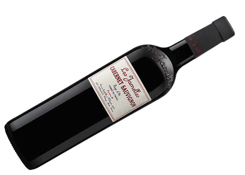 Les Jamelles, Cabernet Sauvignon — красное сухое вино, созданное из одноименного сорта винограда, который произрастает на 15-20-летних виноградных лозах. Виноградники расположены в апелласьоне Лангедок, между Montpellier и Sete, недалеко от побережья Средиземного моря. Виноград поступает с четырех терруаров: внутренних районов Нарбонны (здесь виноград придает вину богатство и роскошь), равнины Од (ягоды привносят структуру и длину), склонов Орба (виноград наделяет вино бархатистыми танинами, богатством и сложностью) и районов, находящихся под влиянием океана, что добавляет свежесть в купаж. Смешанные в идеальных пропорциях ягоды из этих четырех терруаров создают элегантное и сложное вино с приятной бархатистой текстурой и невероятно продолжительным послевкусием.