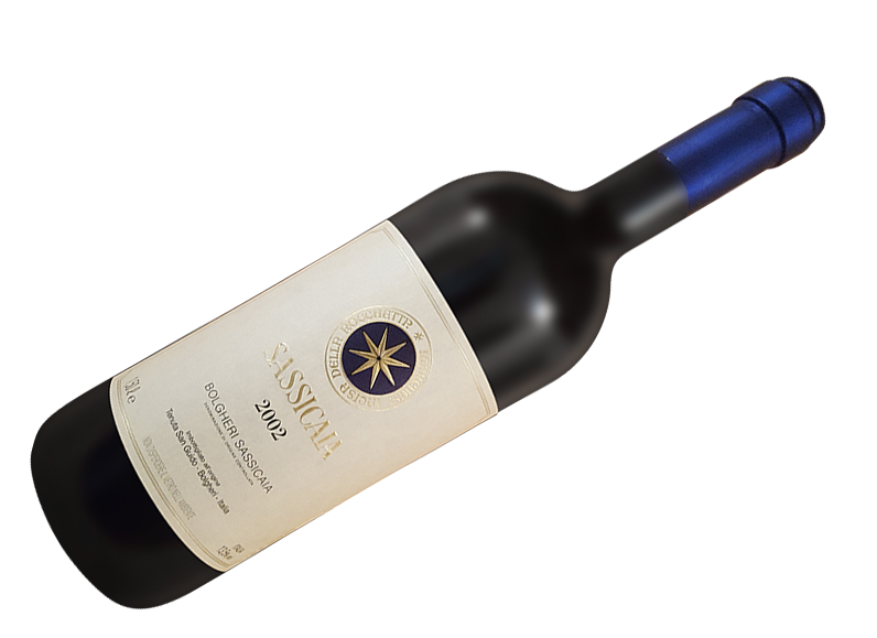 Sassicaia 2002 — элегантное и сбалансированное красное вино из Тосканы с богатым ароматом черных ягод и пряностей, выдержанное 24 месяца в французском дубе, идеально подходящее для сопровождения блюд из дичи и выдержанных сыров.