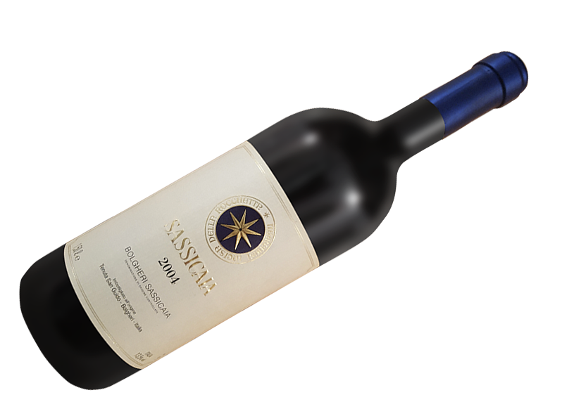 Bolgheri Sassicaia 2004 — элегантное и насыщенное красное вино из Тосканы с комплексным букетом из нот малины, вишни и средиземноморских трав, выдержанное 24 месяца в французском дубе, идеально сочетающееся с блюдами из дичи и выдержанными сырами.