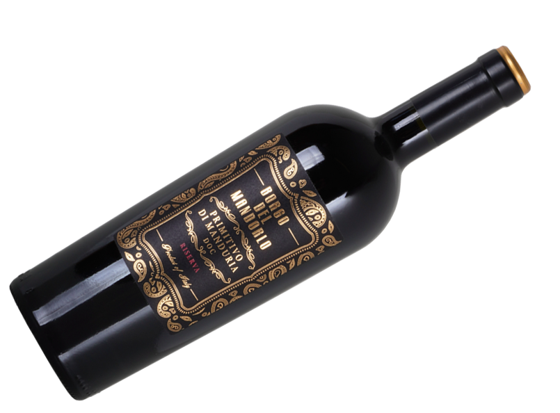 Borgo del Mandorlo Primitivo di Manduria DOC — интенсивного фиолетового цвета вино с мощным вкусом черных ягод, изюма и ванили, пряным ароматом сливы и специй, идеально сочетается с жареным мясом и сырами, выдерживается в нержавеющих стальных резервуарах после тщательного процесса ферментации.