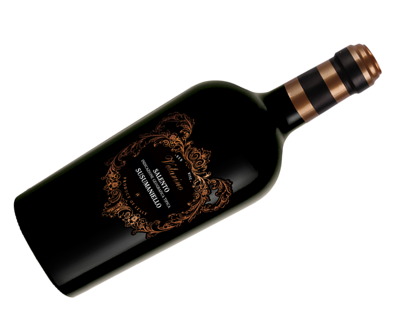 "Velarino Susumaniello" - интенсивное темно-красное вино с гармоничным фруктовым вкусом и яркой танинностью, ароматом красных ягод, специй и лакрицы, идеально сочетается с дичью и твердыми сырами, произведено из сорта винограда Susumaniello в Апулии, часть выдерживается в дубовых бочках 6-8 месяцев.