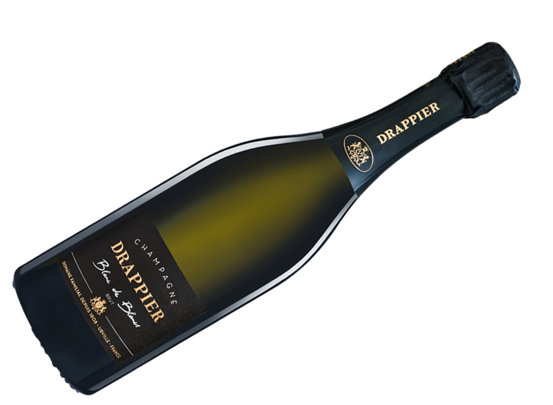 Champagne Drappier, Blanc de Blancs Brut — классический Блан де Блан, который по мнению экспертов является наиболее сосредоточенным и ярким из шампанских вин начального уровня разных производителей. Как следует из названия, это шампанское производится исключительно из белого винограда, то есть Шардоне. Оригинальность дома Драппье выразилась в том, что в купаж было добавлено 5% сорта Пино Блан, который также называют "Blanc Vrai" ("правдивый белый" или "реальный белый"), благодаря которому увеличивается сложность и округлость вина. При изготовлении шампанского используется только сок первого отжима — кюве, который перемещается в резервуары под действием силы тяжести. После естественного осаждения производится двухнедельная алкогольная ферментация при низкой температуре, а затем — полное естественное яблочно-молочное брожение. Затем вино разливается в бутылки без фильтрации и выдерживается как минимум два года. Сера во время производства используется минимально.