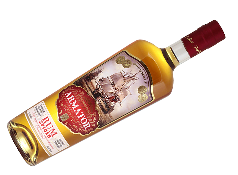 "Арматор Пряный" - ром с золотисто-карамельным цветом, богатым вкусом цукатов, фруктово-карамельными тона, акцентами сухофруктов и послевкусием кокоса, шоколада и корицы; аромат наполняется тропическими фруктами и пряностями; универсальный напиток, идеально сочетающийся с мясными блюдами, шоколадными и фруктовыми десертами, а также кофе; изготавливается по традиционным методам с добавлением отборных пряностей, сохраняя все нюансы аромата и вкуса сахарного тростника.