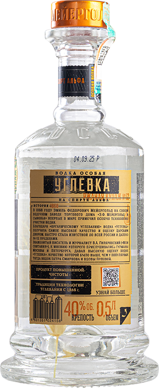 Особая ржаная водка на спирте «Альфа», очищенная древесным углём («органическое углевание»), с мягким, чистым вкусом и хлебными оттенками, созданная как современное продолжение дореволюционной марки «Углёвка».